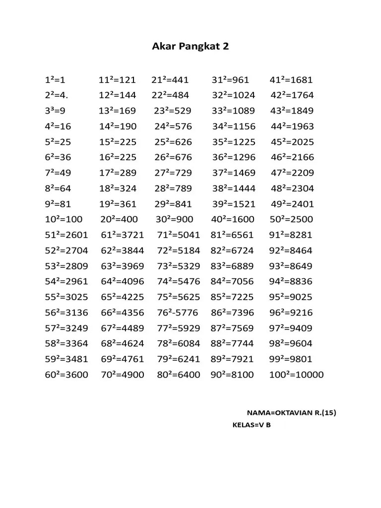 Akar Pangkat 2 Dari 225 : Myproblem : akar kuadrat suatu bilangan pada materi di atas, kamu telah mempelajari bagaimana menentukan kuadrat suatu bilangan, misalnya :. Contoh soal 6 digit : Dan pertanyaan lainnya yang kurang dari 300 maka kalian dapat melihat dari tabel diatas. Bentuk sederhana dari √12 = 2√3. Dan apabila bilangan kuadrat itu di akarkan dengan akar pangkat dua maka hasilnya adalah bilangan yang dipakai pada perkalian berulang tadi. Sebaliknya, bilangan irasional adalah bilangan yang tidak.