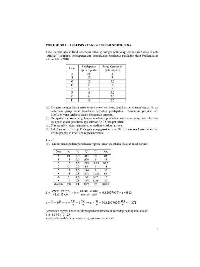 Regresi contoh soal dan soal. Uji signifikan koefisien korelasi berganda (uji hipotesis) pengujian signifikansi koefisien korelasi ganda dilakukan dengan uji f (anova) yang rumusnya sebagai berikut: Bagaimana cara menghitung koefisien korelasi? Berarti kemampuan variabel bebas dalam menjelaskan varians dari variabel terikatnya adalah sebesar 64,0%. F = ) 1 / ( ) 1 ( ) / ( r 2 2 k n r k keterangan: