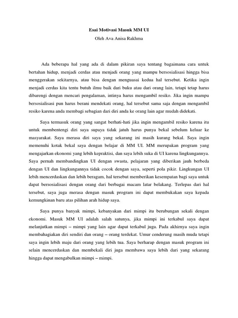 Contoh essay masuk perguruan tinggi atau melamar peserta calon penerima beasiswa.
